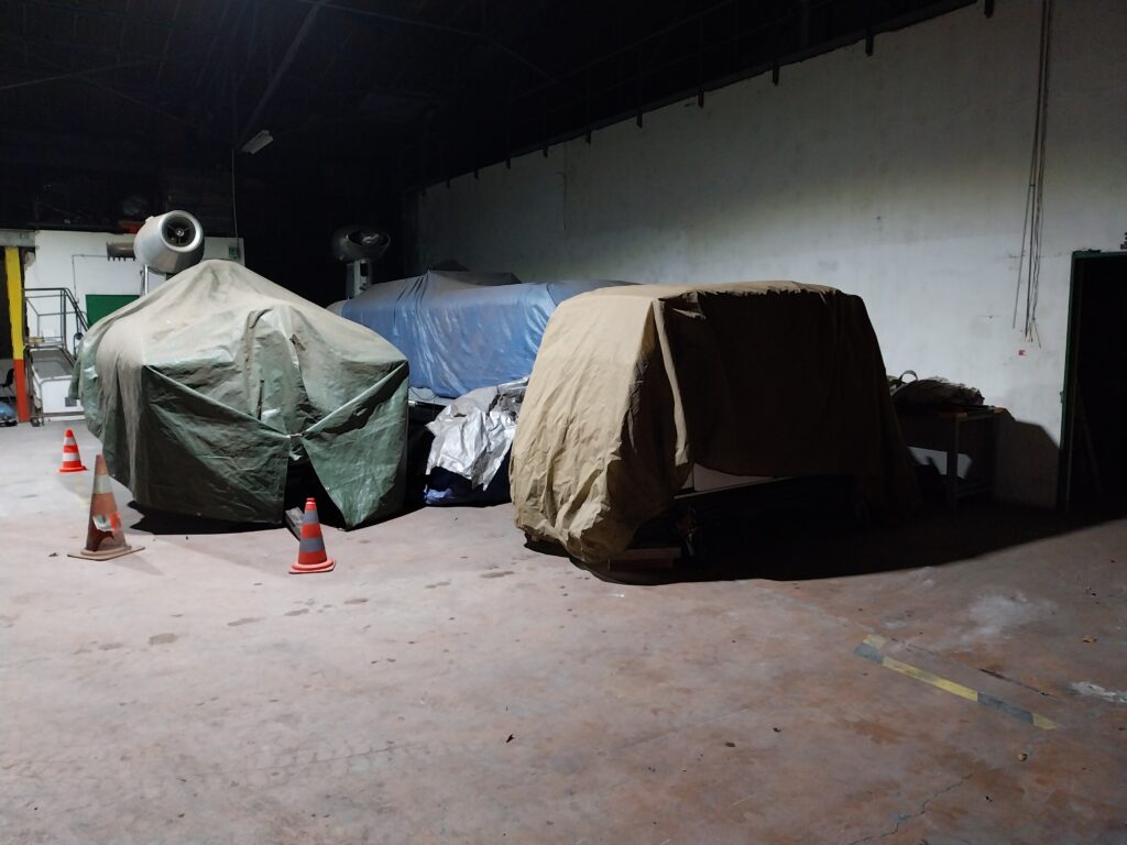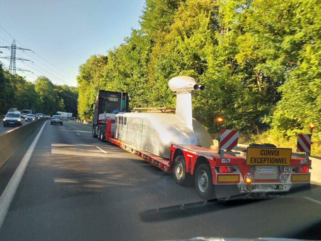 Nous nous sommes préparé et organisé depuis des mois pour le déménagement des prototypes Aérotrains, du Témix, des maquettes historiques, turbines, moyeux, rail et la pose de l’Aérotrain 01 sur sa remorque définitive construite par nos soins durant l’année.